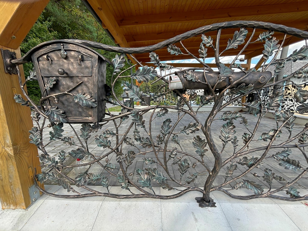 Ručne kované poštové schránky vsadené do luxusného oplotenia