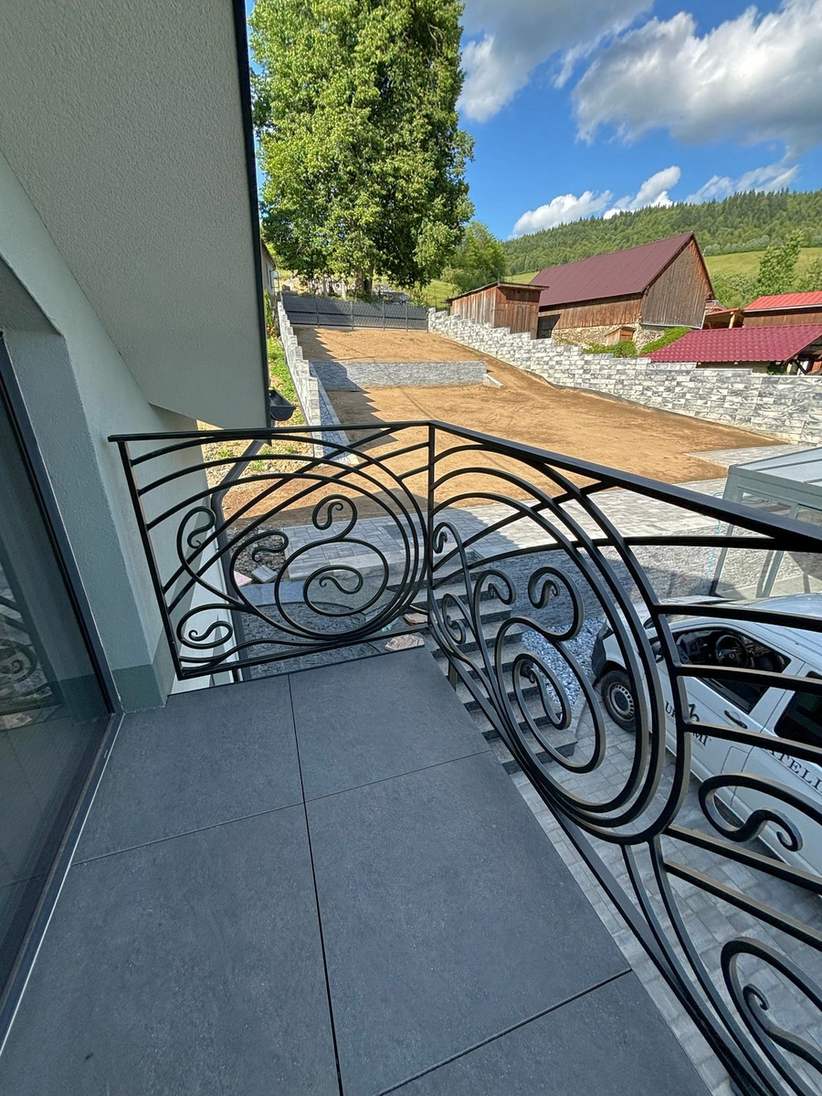 Dizajnové kované zábradlie na balkóne rodinného domu na Spiši